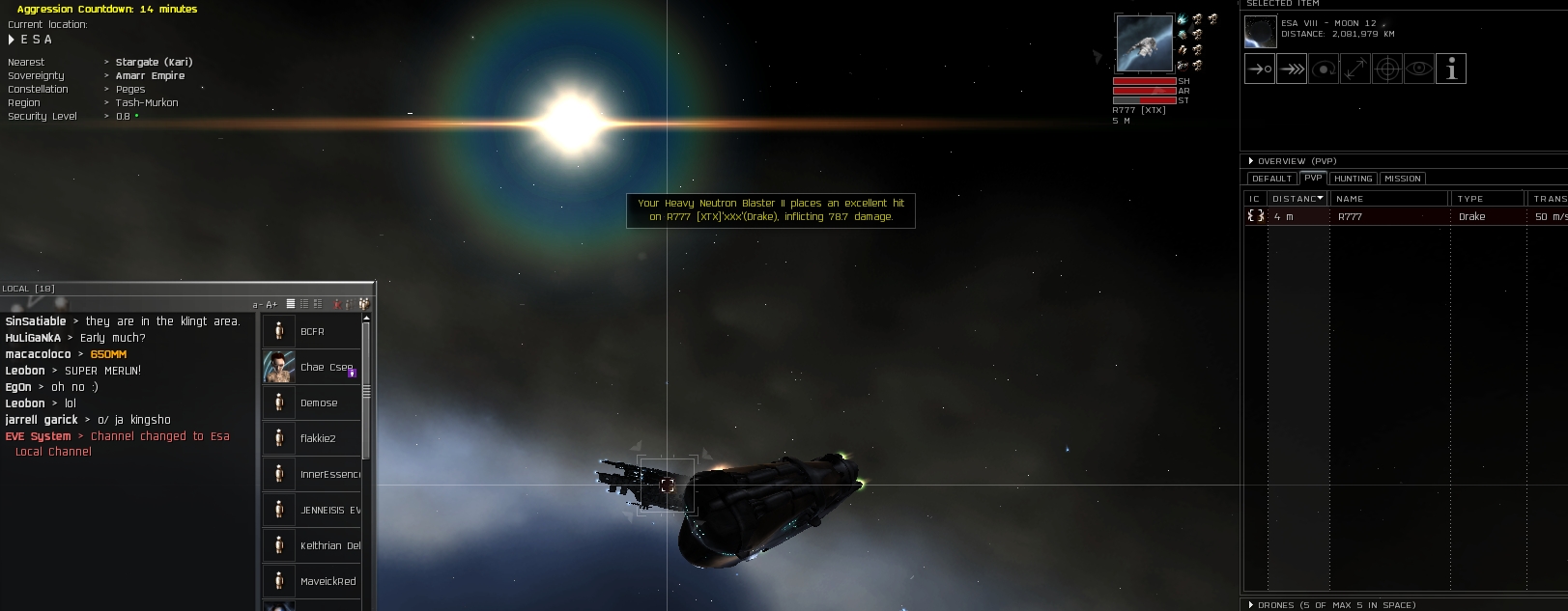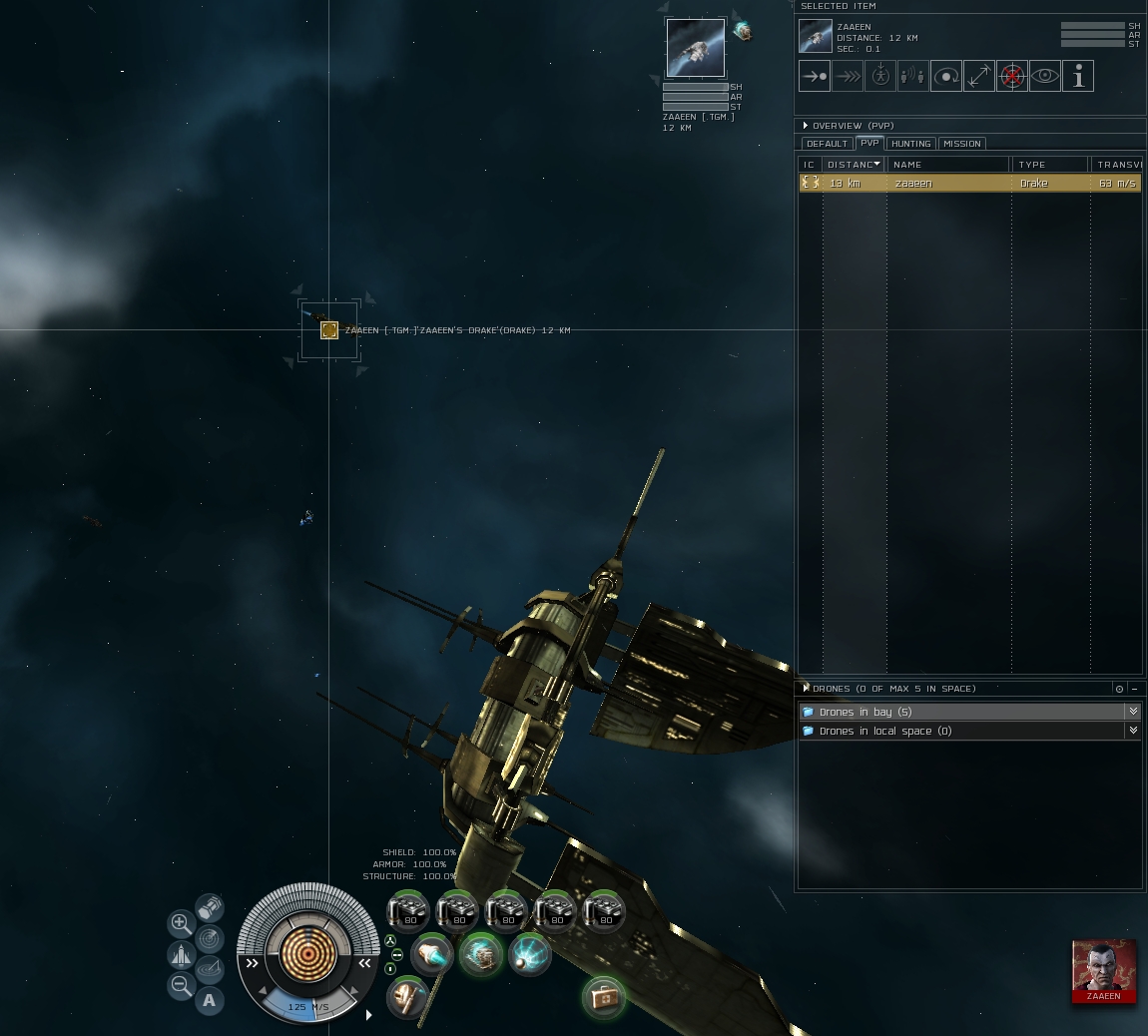 He was a good sport about it though, gotta give him that much. The catalyst to this war, a pilot named Zaaeen, happened to cross my path in his Drake one night.