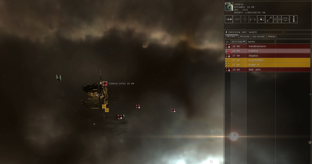 Guild? WTF!? Apparently he forgot this isn't WoW or EQ. He starts to realize that we actually would dec his corp and tries to backpedal. We asked why he would use his alliance to threaten us if he really didn't want to fight....