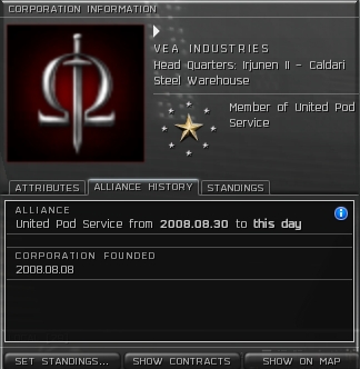 I let him know that we will dec the corps he joins at one point or another. He doubts me and I keep doing it. The thing that amazes me is not only do these people recruit him without asking any questions, they want to try to work a deal to end our vendetta against him. They know him all of 1 day and they're already trying to save him from certain death. They think we're afraid to dec them sometimes because they're in an alliance or a "PvP" corp. Not so as you know.