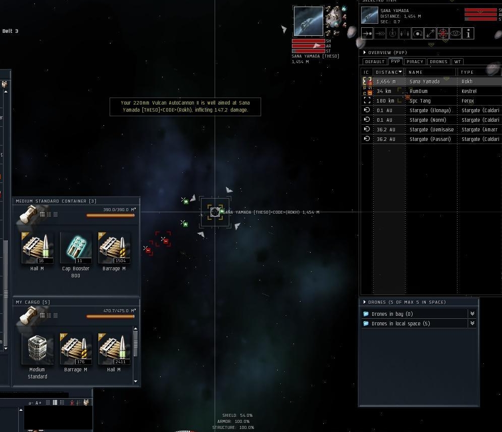 Before the engagement my guy also aggro'd a Ferox who ran from his Hurricane. His name was Spc Tang. Spc Tang had a friend named Sana Yamada in the Rokh who was baiting my guy with a can. So they both sit and smack and taunt in local.