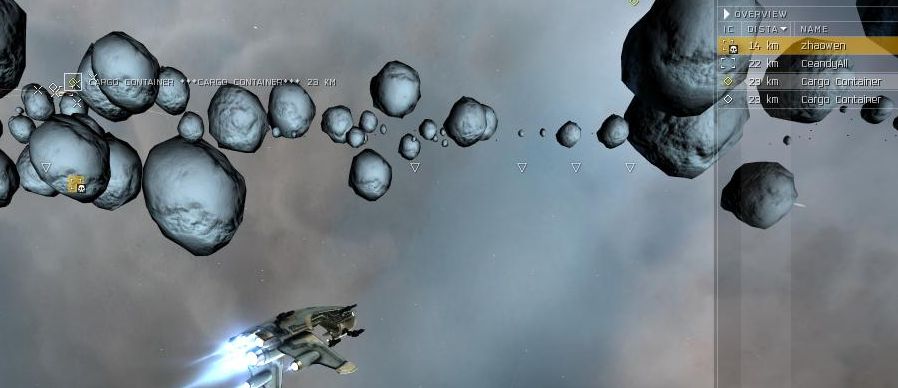 I like to steal in small ships because it lulls them into a false sense of security and they still send out their big guns in battleships to combat a frig menace. As predicted zhaowen jettisons a can, and Ceandyall puts his ore in it and I steal it in an instant.
