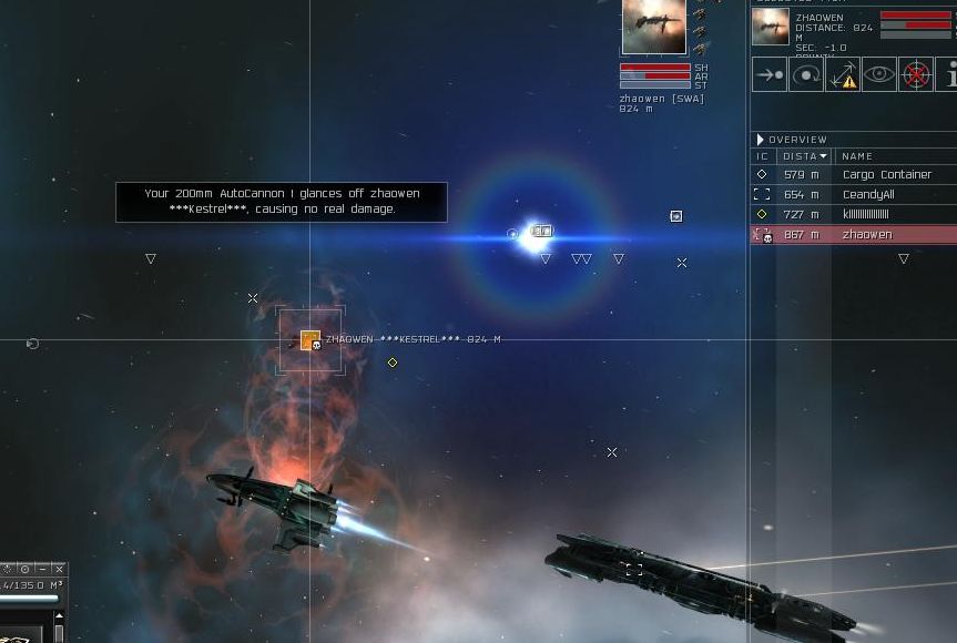 I warp back into the belt for more ore theivery and just as I guessed, there is zhaowen in a Kestrel with a nice lil 2.5 million bounty on him. Too bad we're in high sec. Though I am working on an alt who can I can sacrafice their sec status so they can pod the macroers in high sec and get their bounty as a lot of the combat pilots in the macro crews have bounties on them.