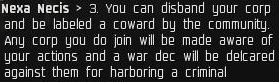 Black Daze corp has continued it's war against my person, but I have not seen their presence in several days. This leaves only The Untouchable Allegiance corp. It's a one man corp and the CEO is a few days older than Nexa. I figured what the heck.