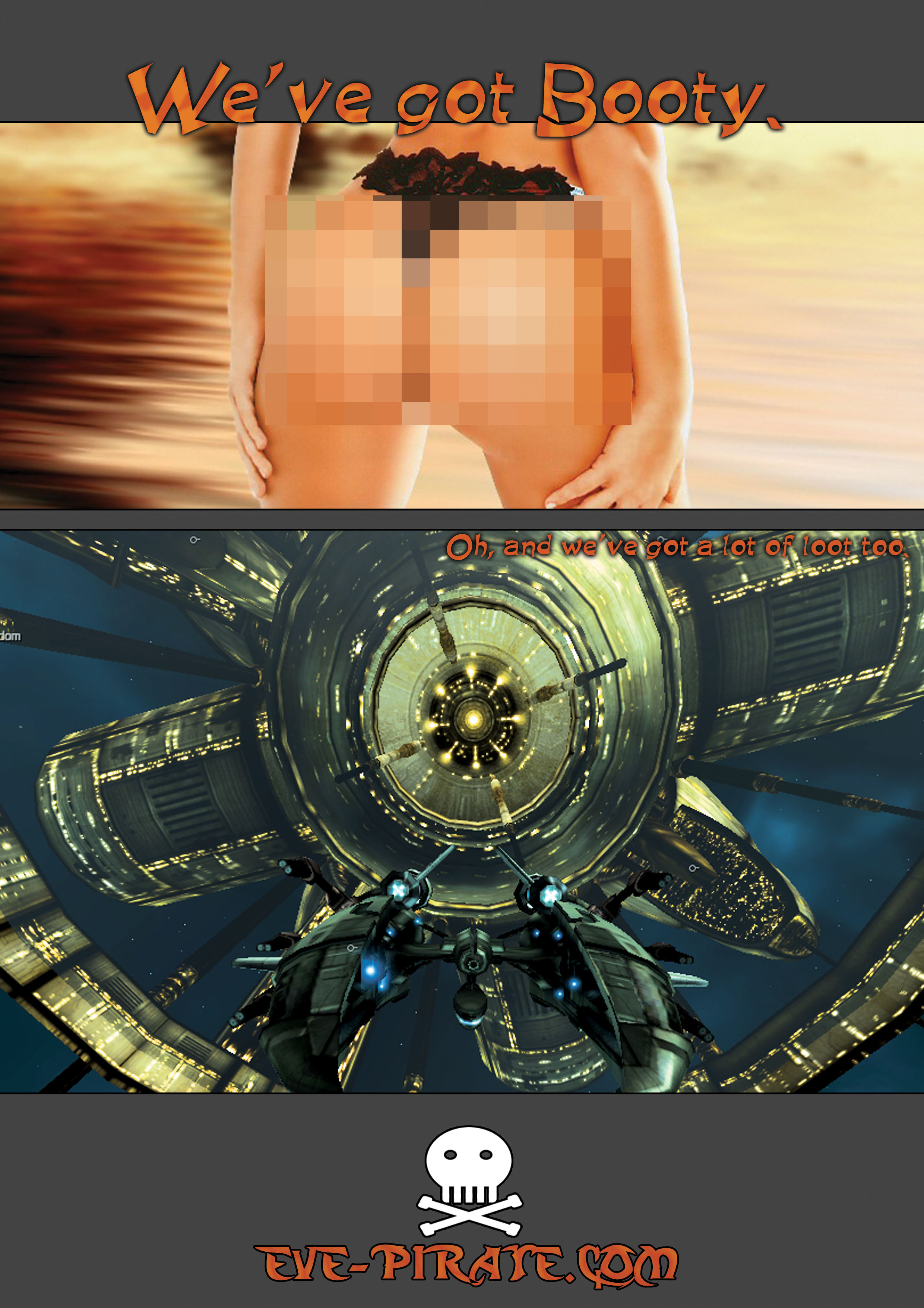 Yay ppl agree :P Tbh i find the text all a bit lame... the text from the first is nice... but imo "www.eve-pirate.com" is sufficient. blow the people away with an image... they need to remember the name of the site not some random slogan.. right?