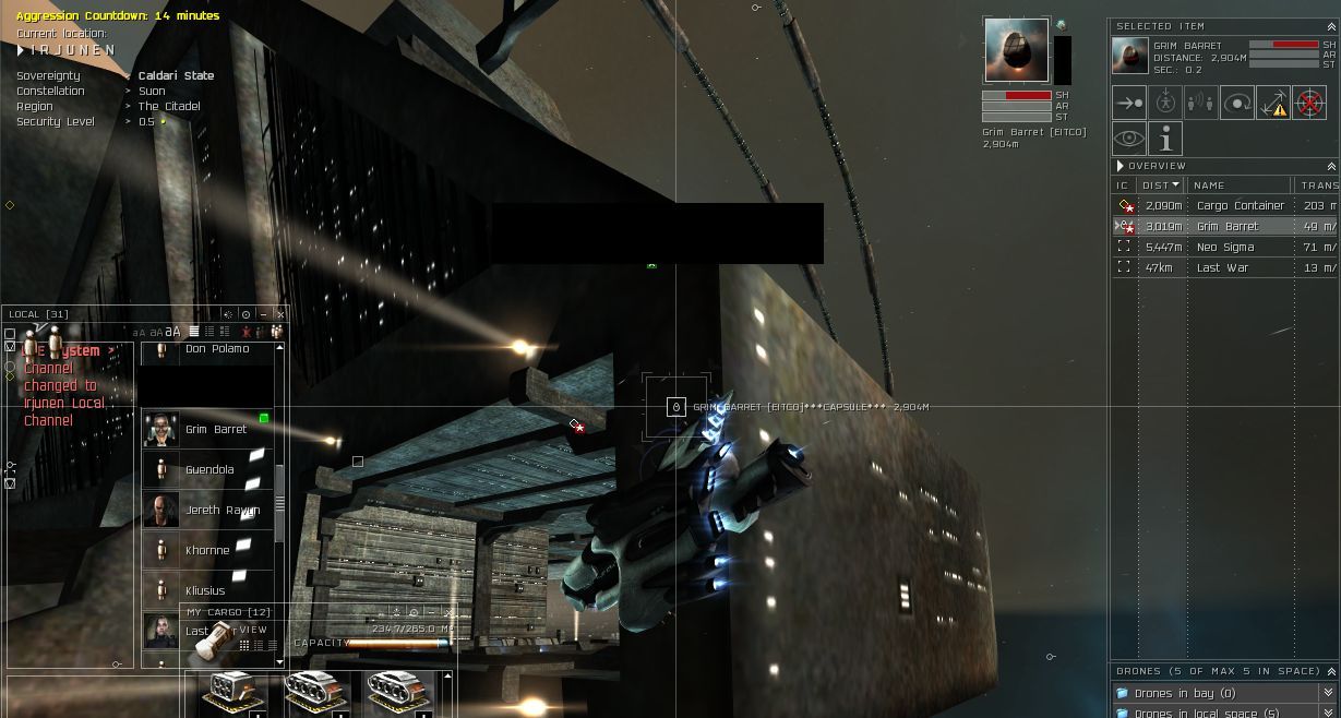 I apologized for that and cut my surrender offer in half. They complained they didn't have that much and couldn't make any cash the last few days because of the war, and now they had lost more money because of the kills I made on them. They said if I gave them a brief respite from the war, they would be able to pay some but not all of the 50mil demand. So I agree. They paid me part of it as a sign of good faith. I called off my cronies and let their corp kill some rocks to make the payment we agreed upon.