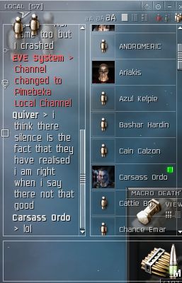 When I log back in I see Quiver and his friends talking more smack in local as usual....pay attention to the chat log time....