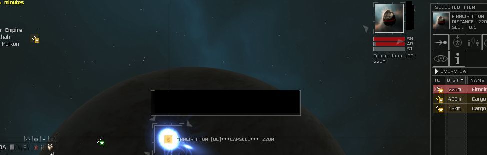So the server crashes for about 15 minutes. We scramble to log back in. Just as I get in I see his name go green in my addressbook the same time my corpmate gets in the game. My corpie manages to find him, pop his uber-fast and WCS'ed Atron and proceeds to lock and scram his pod. Now he is not so brazen.....