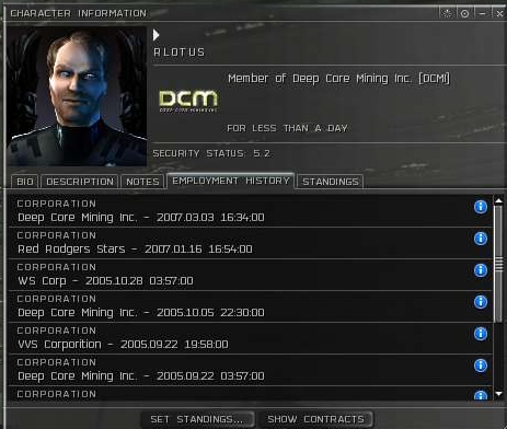So the war begins and they promptly park their asses into their HQ and refuse to do anything but undock/redock. I think they figured we would get bored after a bit. Two or three more days go by and now they have resorted to fitting all WCS in low spots, warping out of the system, redocking in a neighboring system where their mission is then refitting and start the mission, then reverse the entire process to get back to their agents for the next mission. But usually they never undocked, even when they had the odds in their favor.