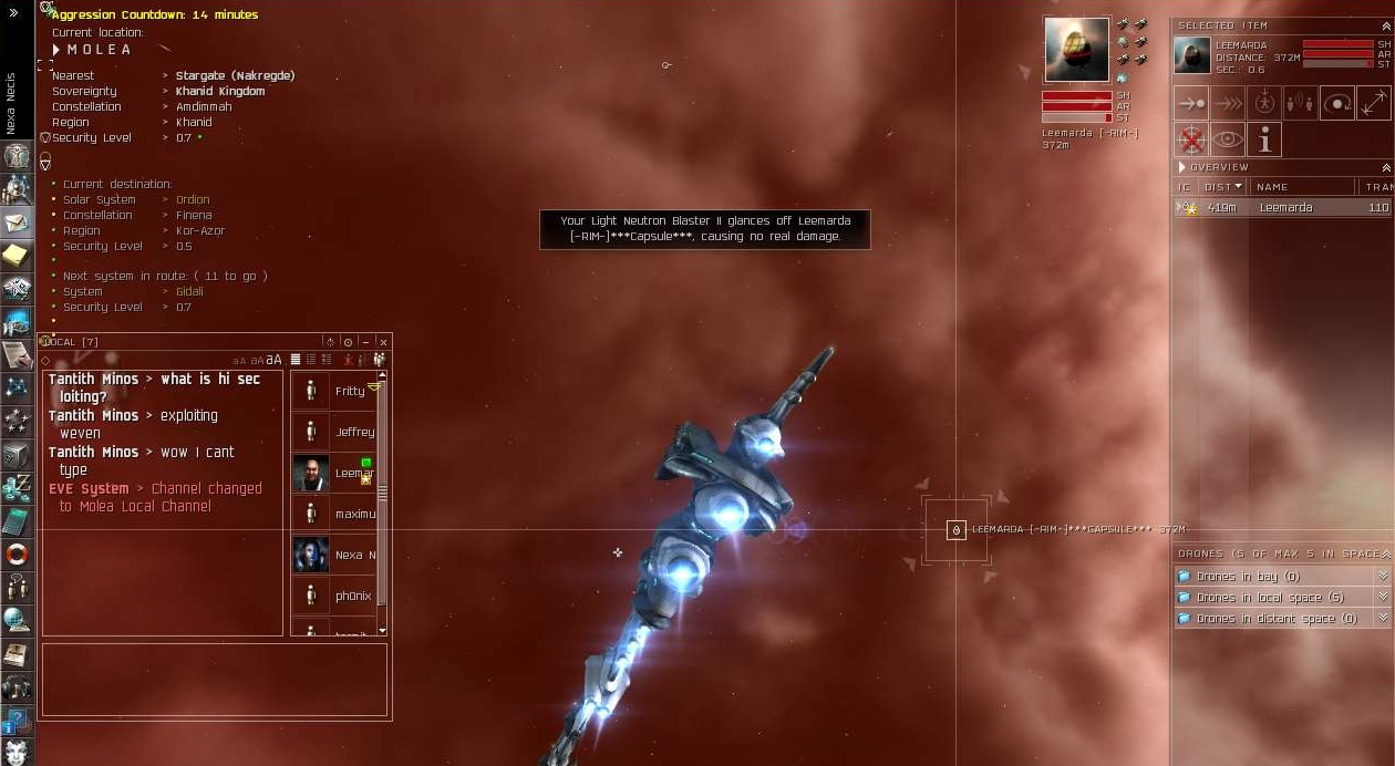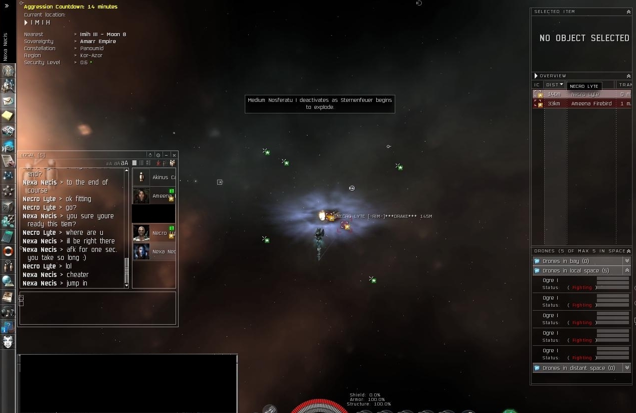 [ 2007.06.03 17:19:50 ] Nexa Necis > then as i was fighting aveena necro undocked his raven but redocked when he saw she was about to die and that I had backup