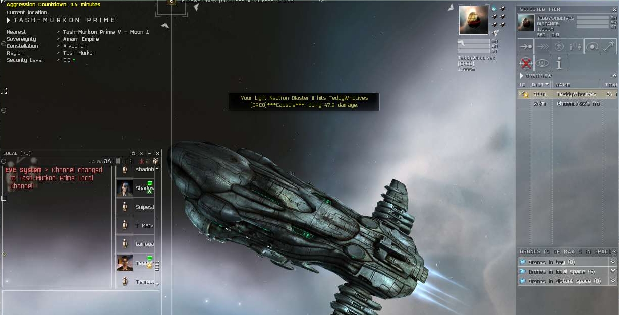 One night we finally catch one of their members while he's out running a mission. We make his Drake go kaboom, but his egg gets away. He immediately docks and quits corp.