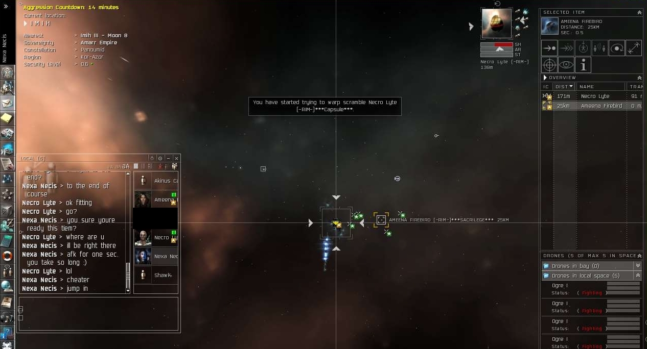So they were obviously not AFK, and they obviously had combat ships at the ready. 5 vs 1 wasn't good enough though, so nothing happened at that point.