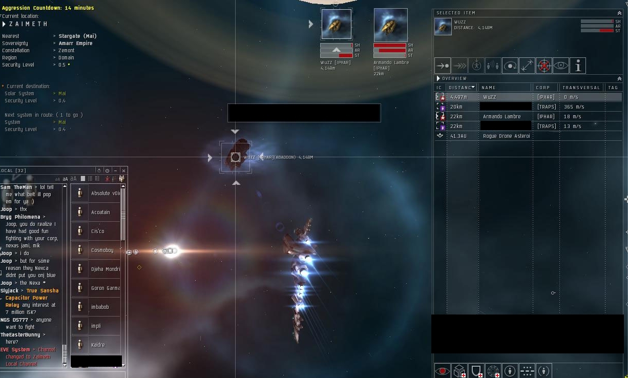 One night we were camping a few of them. They did the usual undock/dock dance and wouldn't fight even though they had the numbers advantage. So we decide to make our own fun.