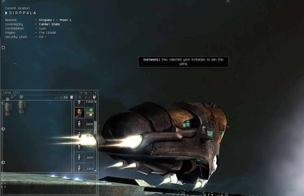 And yeah, it proves again that is the honest guys being "honest", u can clearly see it when they chat all fine and happy when they are out of harms way, but when u press on em, its a burst out of shit talk from their side how "nubbbish it is to fight in hi sec and how REAL MAN fight in .0-.4 space".