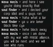 [ 2007.06.17 21:00:14 ] gabrial1 > your alliance will dwindle or you will pay 1 bil isk