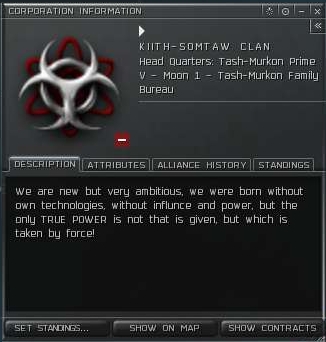 So they're born without "influnce and power" so it seems they are willing to take "TRUE POWER" by "force!". I mean, really if you're going to have such bold corp bios, you should realize that someone might want to put you to the test. Instead of a bio like "We're gonna take over Eve bitches, and you will all bow to us and lick our nuts!", how about something like "We're a friendly corp who enjoys missioning, mining and industry."