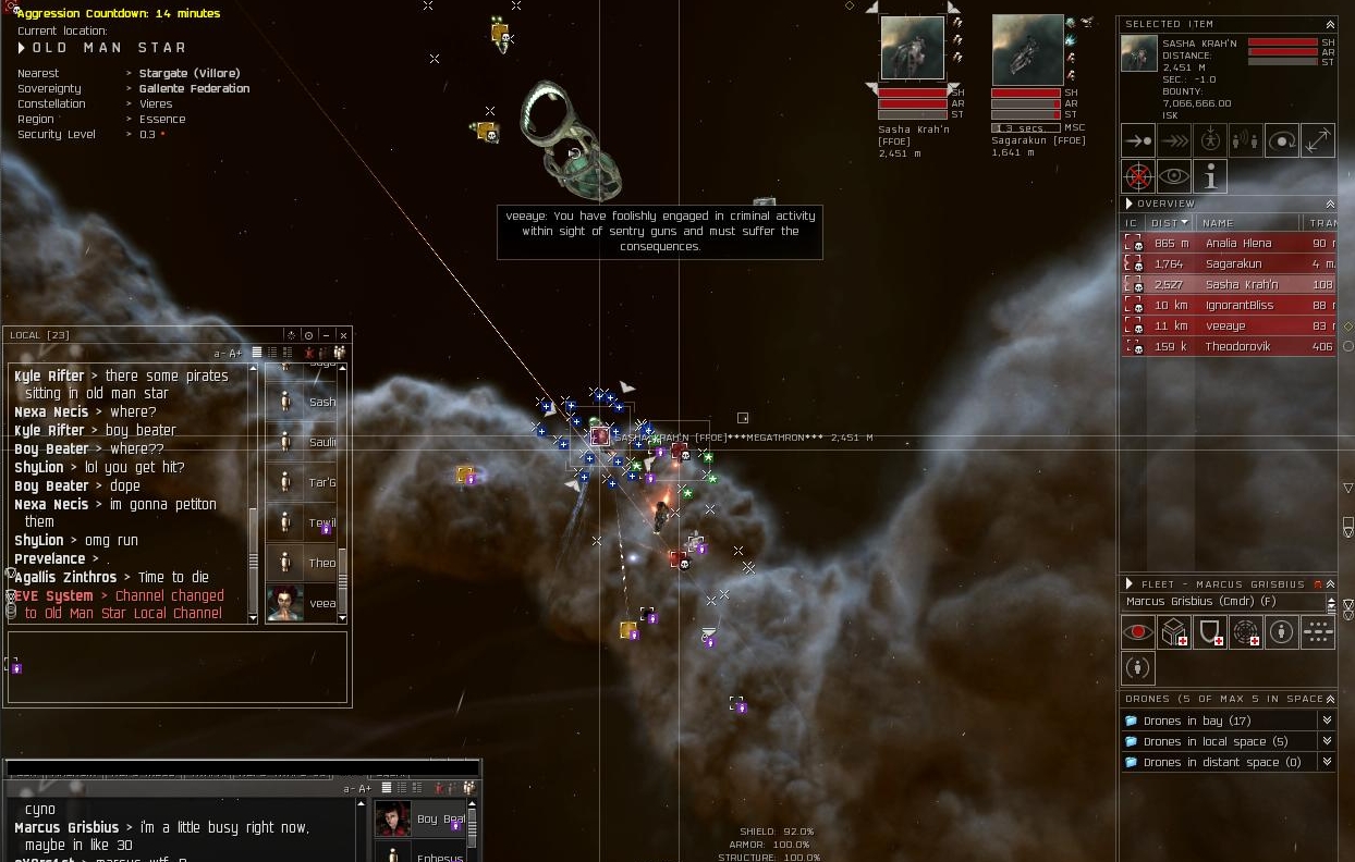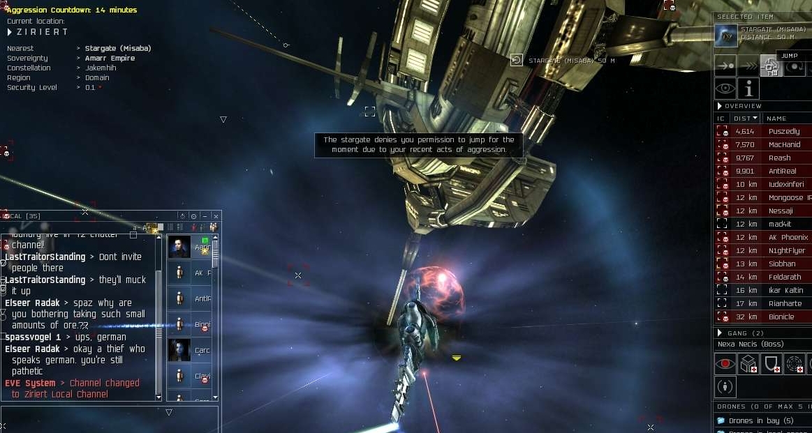 "He claims he was just goofing around, but I honestly detected no humor in his comments. More like "Hah look at that wanna be pirate with a bounty and positive sec status sitting in high sec running a mission, let me bust his chops cause he can't do shit to me."