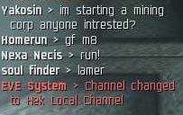 [ 2006.11.18 18:18:43 ] Nexa Necis > why wait for low sec to see me, war dec my corp asap