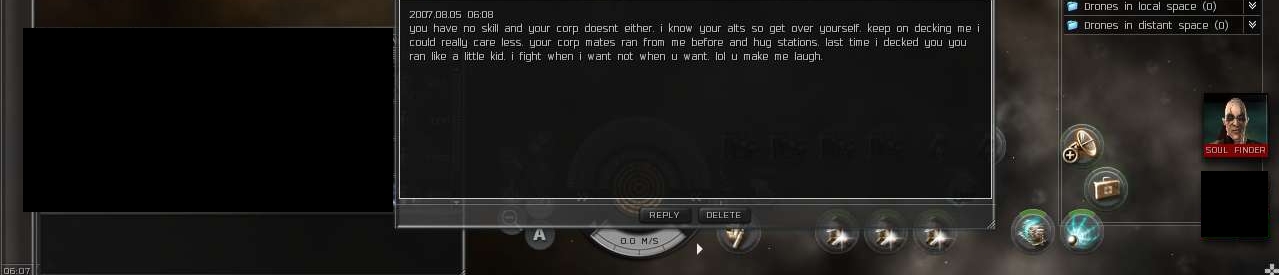 Fun to read and funny as well. I actually feel anger when you talk about these people and what they say and what they don't do to back it up. Makes me wish i wasn't stuck in low sec and 0.0 for the time being (working on that) I would really like to take you up on that offer of putting a war-dec on soul finder, but cant for many reasons. Maybe one day I to will have the ability and the funds to lay waste to carebear scum and splatter them across the night sky.
