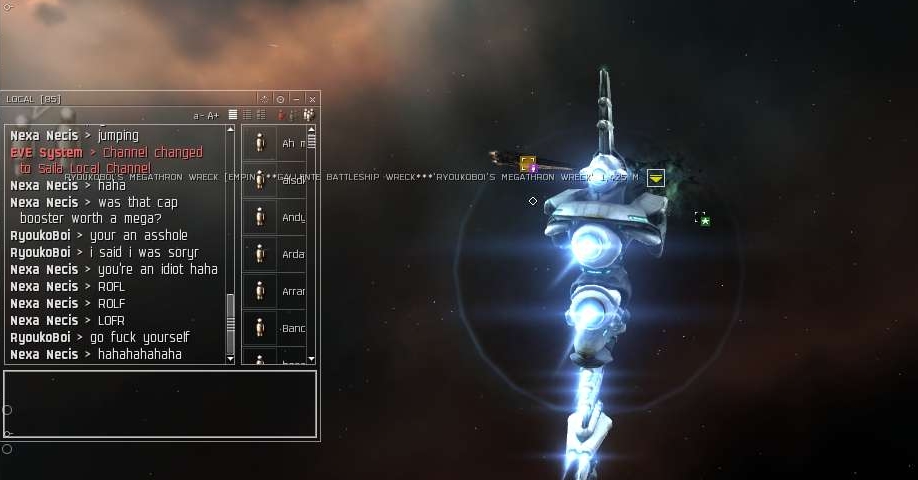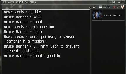 Also, Eve doesn't care about outside sites. Ander and I had one guy make death threats. I asked CCP what they would do and they said nothing, since they're not making them in game, they won't touch it. So nice try making up that linking them to here is gonna get me in trouble. Also, post all your screenies too that show I am lying. The community here would love to see it and you would make tons of carebear friends by showing how I am a huge liar and chat log hacker.
