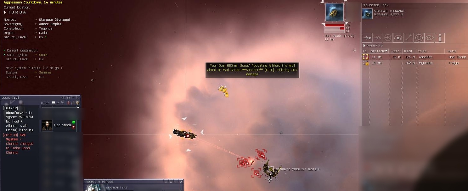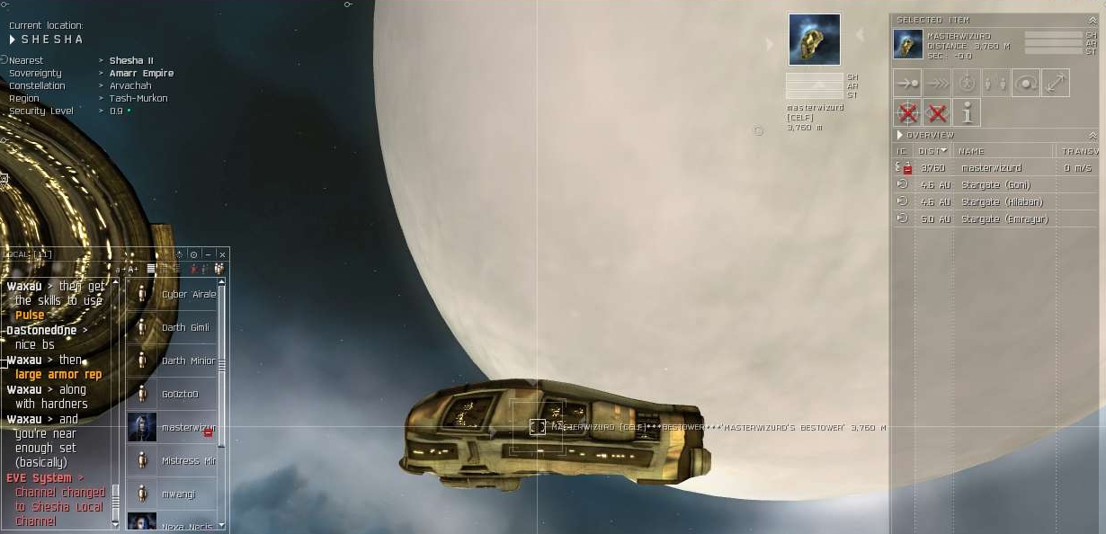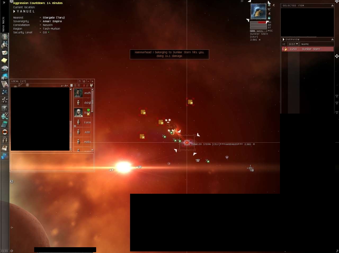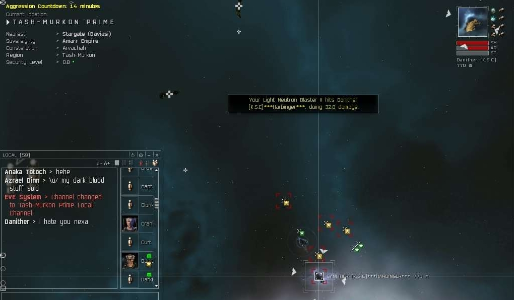 So he is cavorting in and around the TMP area and my handy dandy cov ops out is watching him from afar. He's in a Harbinger. Sweet. Well, not so sweet for him. I started laughing when I read local.
