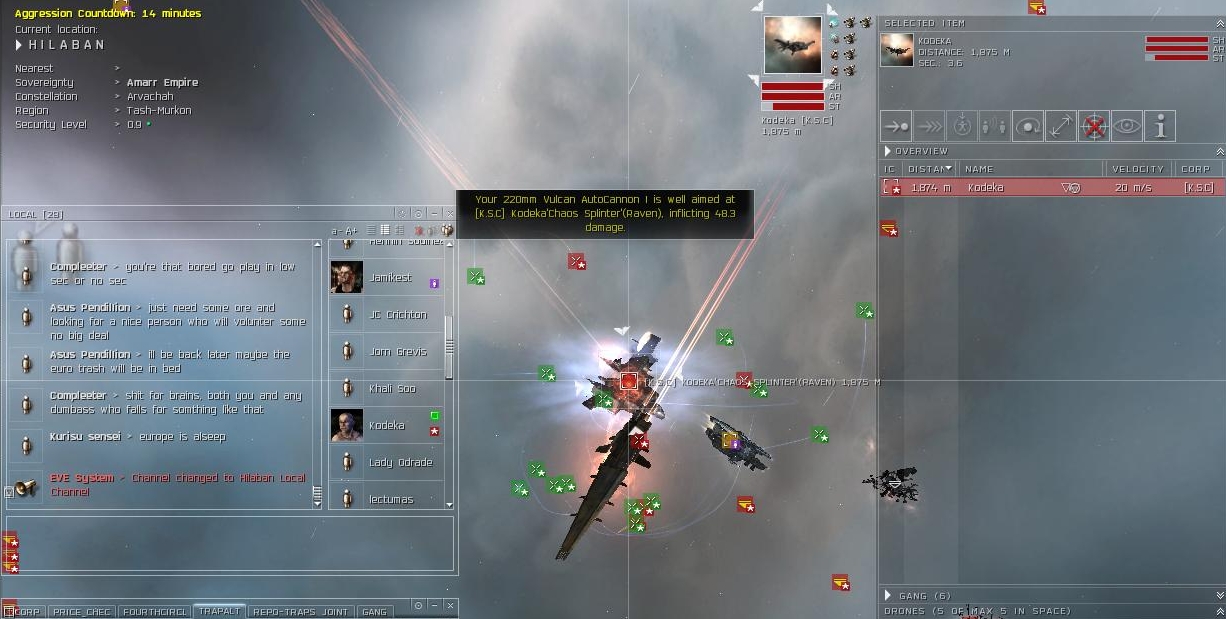 From the way ppl talk in empire i swear most of them must be 12 or 13 years old you get the same thing with gate snipers that shoot haulers as they align in losec but still everyone above 18 in this game at least seems to be fairly normal