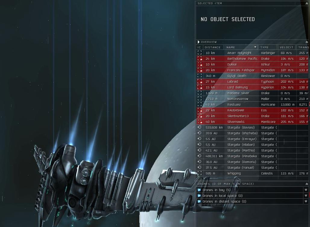 For example. I was in TMP alone. I saw two war targets. One Drake and one Interdictor I can't recall which. I see one of them at a planet so I warp to it in my Myrm. Mind you I had backup waiting one system over. So I warp to the planet just as the Drake leaves and the Dictor warps in. I get it webbed and almost manage to pop it. He MWD's out of range quick enough and sits and circles me. So I sit there waiting for the Drake to warp in. He warps in and I lock him down and my guys warp in.