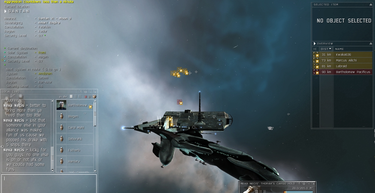 and just to clarify the one talking smack was the drakes alt not mine. i was in the interceptor. nexa knows me. i dont smack talk much. well not too much anyway :)