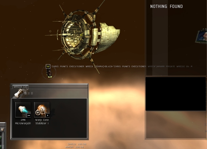 One night I am off to low sec to search for new friends. Of course it's completely empty, so I decide to try can flipping since it's been ages since I have done it last. I find a guy and his alt mining, I go to the can, and there's a bookmark in it. I take it and sit there. They do nothing to me. Instead, he opts for smack talk.