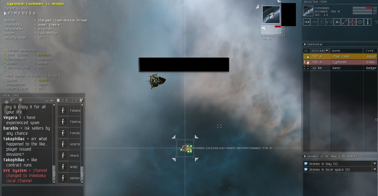 I felt bad for one of their guys Cyphor85. He ended up losing 7 Drakes, a frig, a dessy and 4 pods. I remember one night I popped him...