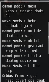 Instead what happens amazes me. He immediately decloaked and proceeded to just sit there. He wasn't on autopilot because my alt followed him several jumps, he warped to 0 every time. I have no clue what happened.