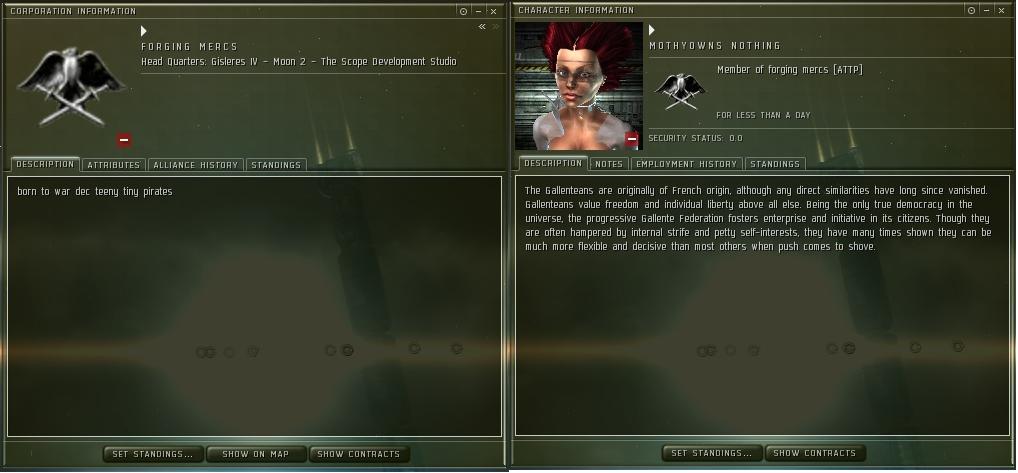So after that pretty poor trap, they decide to take things a bit more seriously. So seriously in fact, they make a whole new corporation just to war dec me and my single friend! WE felt rather honoured by this.