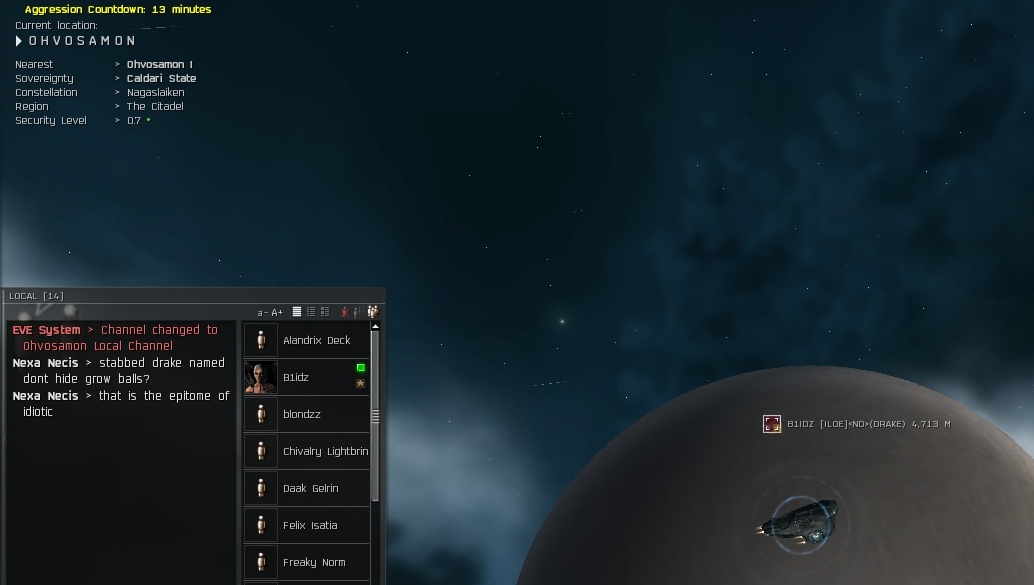 Hells yeah! Ratting in a .7 system with a Drake! Kickfuckinass! Wanna laugh some more? Look at his ship name....