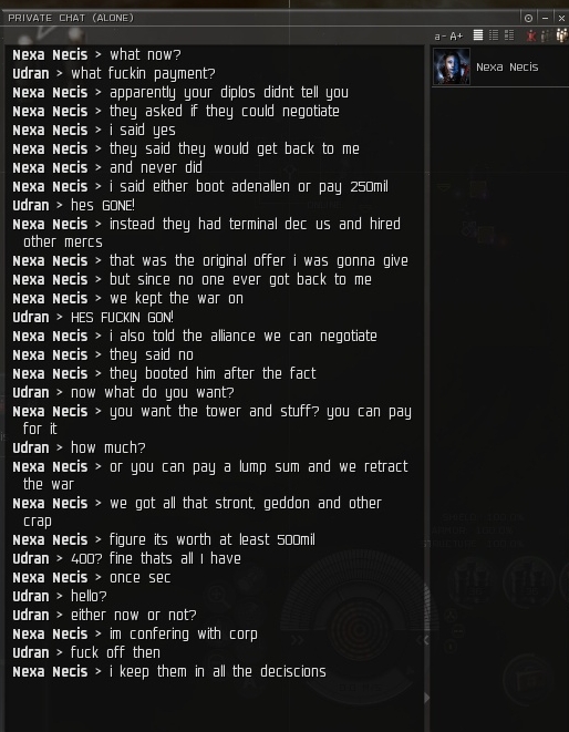 Nexa Necis > now there will be no offer for isk surrender :)[/b]