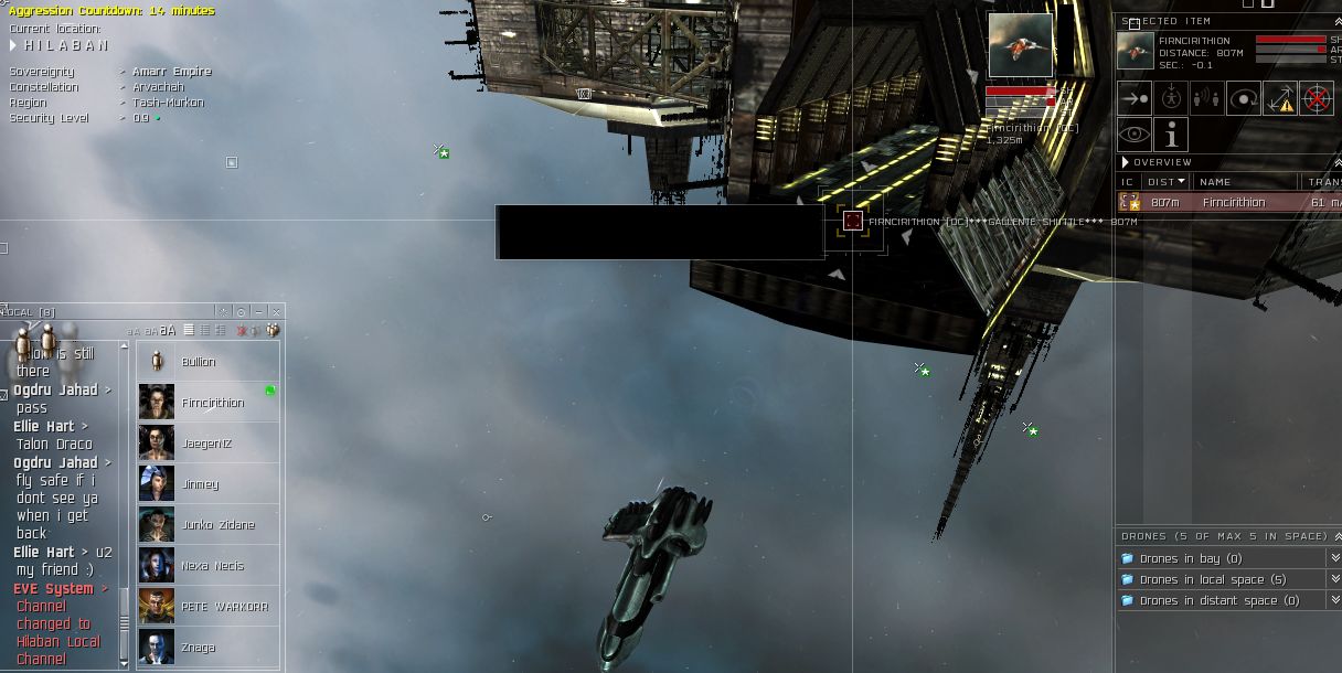 Turrican logs and then the fun begins. Firn decides to undock in a shuttle....and just sit there idling....