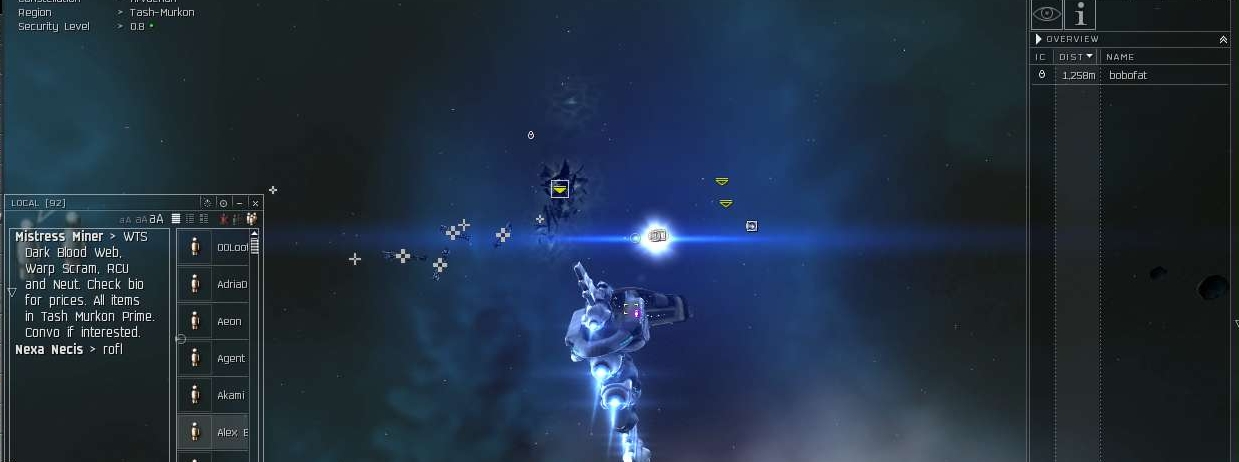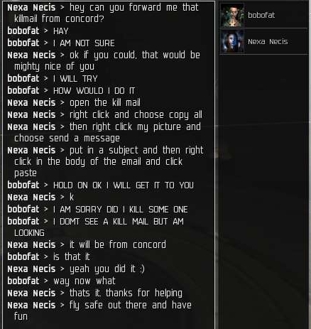 As usual, they start getting weird on me. One guy starts convoing my corp asking if he can join us. What planet are these people from?! I decide to goof with him a bit.