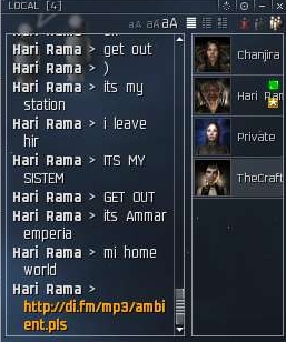 So back they go to the old station hugging technique. Some of them opt to run 20 jumps out and start anew with a new agent and a new system. Of course, they fail to realize how many alts I have. So I park one to camp this guy. He goes nuts in local for an hour. Screaming in broken English and bemoaning his situation in Russian as well.