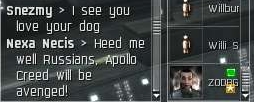 So in between them docking in their frigs and me popping and podding them with my Domi, I would link Youtube videos of the Apollo Creed vs. Ivan Drago fight.