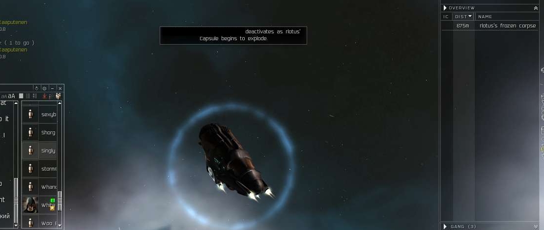 Of course the Omen was stabbed up and warps out as soon as he realizes it's a lost cause. Then Rlotus pulls the ol Logoffski. Notice in the picture we're about to blow him up and yet amazingly, his name doesn't show in local?