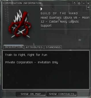 We also had a war against Guild of the Hand. They were a splinter corp of Zion who we demolished in one of our last stories. Of course, their corp bio would lead you to believe if you were to war dec them, they would be all about some pew pew action, right?