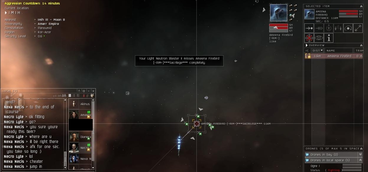 The Sac pilot barely was able to redock. I was owning them easily, then my backup arrived and we got her into low structure before she was able to de-agress and redock. So close!