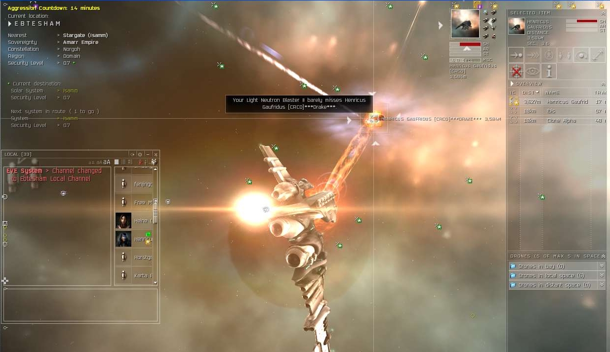 One night we finally catch one of their members while he's out running a mission. We make his Drake go kaboom, but his egg gets away. He immediately docks and quits corp.