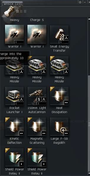 With T2 launchers and missiles those passive tanked Drakes are ridiculously tough. I think we had 2 Inty's, Domi, Myrm, Deimos and something else and he actually lasted much longer than he should have. I can see why all these people fly them. That "nerf" in Rev 2 did absolutely nothing as far as I can tell. Basic loot too. Nothing overly expensive and he was a tough fight.