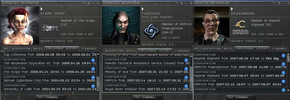 I found it odd that a lot of people in the post commented how they were good sports in the battles they had fought, yet all my corp had run into was a lot of smack talk or sore loser chats. It's odd that a smack free good sport alliance would allow RIMTECH to join them. Then again, I find that a lot of corps and alliances do not practice what they preach in their charters.