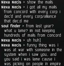 [ 2007.06.17 21:00:14 ] gabrial1 > your alliance will dwindle or you will pay 1 bil isk