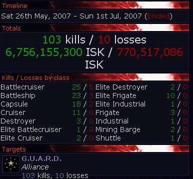 They have one thing i would describe as fighting spirit, at least those who destroyed GUARD. GUARD lost his one after loosing 0.0 space and internal problems. At the time of war declaration, GUARD was a dead corpse already. You have put a stick in a dead body. I'm sure this alliance died not because of some peanuts and 1 freighter loss.