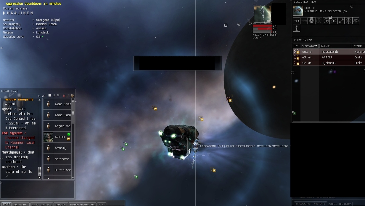 This guy had taken his hauling alt out of the alliance but unwisely decided to keep himself in it. He seemed to enjoy the TRAPS experience though.