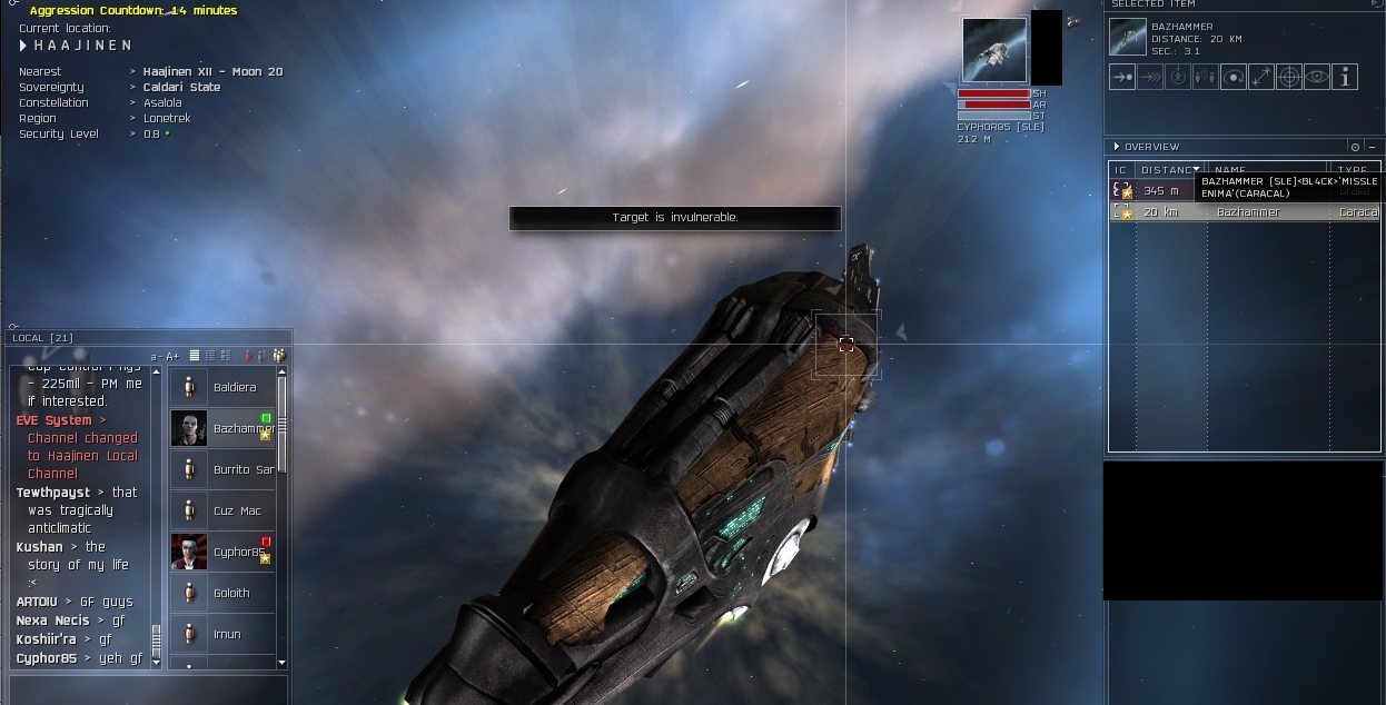 One night we were camping several war targets and Sofia got pissed because no one would come help them with someone who got aggro due to can flipping or something. We were like 18 jumps out and on an op. Several people emailed me asking me to boot them. Thankfully they quit and joined some "merc" corp.