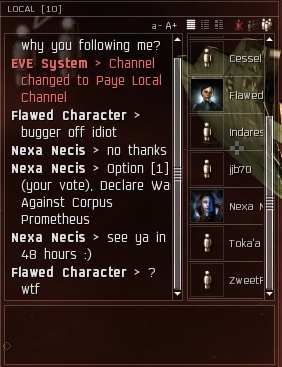 He even created a new corp a few weeks later and I dropped him a message that a new war was incoming and he immediately quit it and joined an NPC corp.