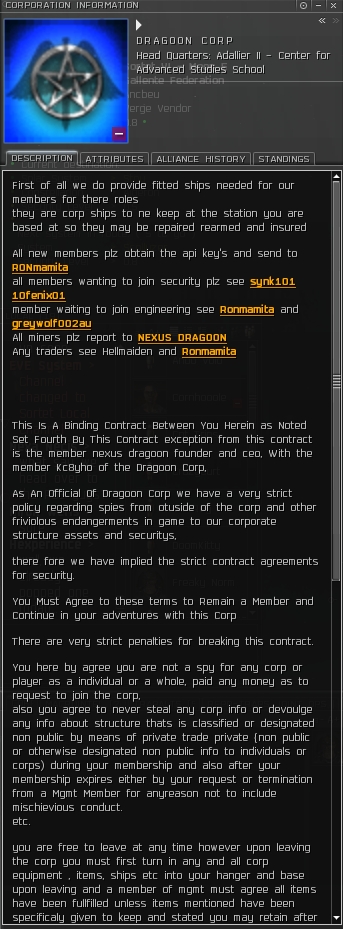 That Dragoon Corp "contract" was hilarious. Not only was it completely an asshole setup, it's also utterly, utterly nonenforceable. Not to mention the spelling of whomever wrote it is atrocious. I'd pay money to see the look on the GM's face when they get a petition about persecuting that contract.